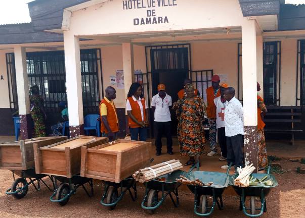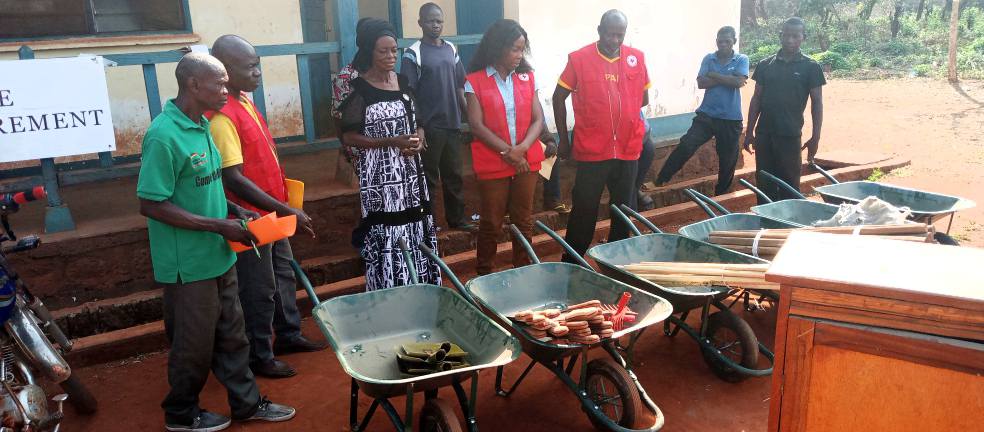 Dans le cadre du projet de Reconstruction du Système de Santé, la Croix-Rouge Centrafricaine a doté les comités locaux qui sont dans la zone du projet en outils de travail tels que les brouettes, les pelles les râteaux etc pouvant leur permettre d’assainir leurs milieux respectifs. Cette remise faite par la Secrétaire générale de la Croix-Rouge Centrafricaine dans les différentes mairie de Bogangolo et Damara en présence des maires et sous-préfets est une grande satisfaction pour les comités locaux. Les autorités locales ont encouragé les comités à en faire bon usage pour la communauté.