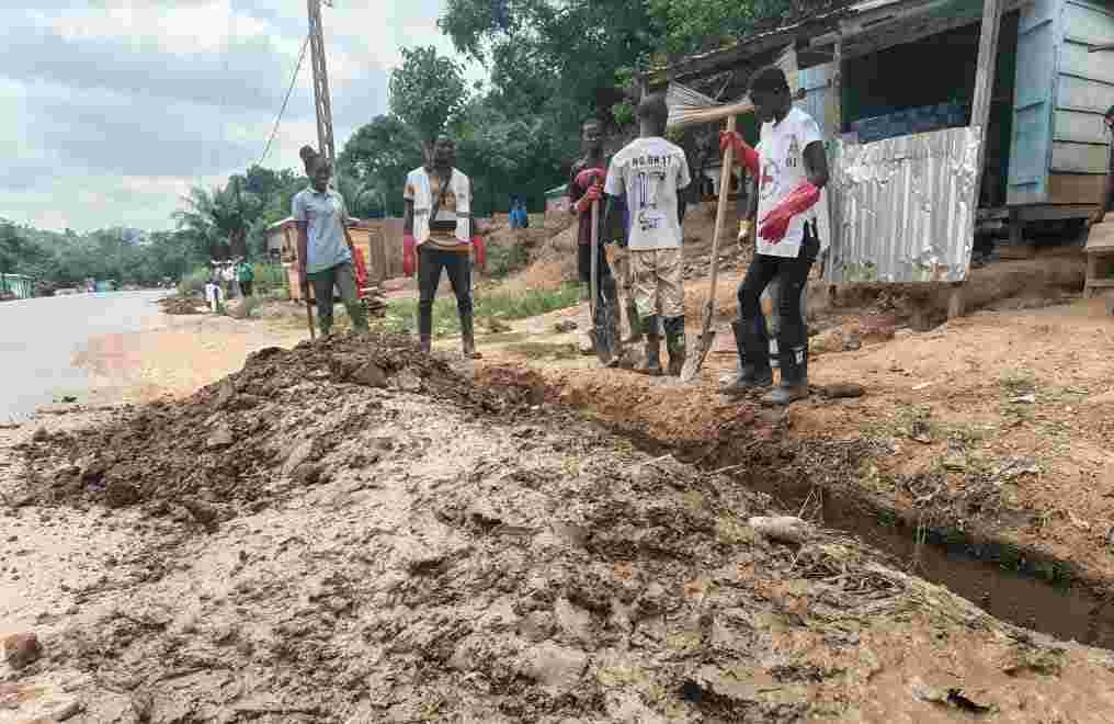 Aujourd’hui à la sortie nord de la Capitale vers pk13 sur la route de Damara, plusieurs volontaires et certains jeunes du quartier ont en main des pelles, pioches, râteaux, brouettes etc pour nettoyer les canaux qui ont été bouchés et empêchent l’eau de couler librement quand il y a la pluie.